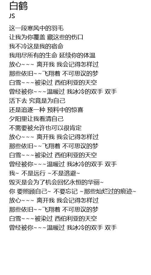| Song | 白鹤 |