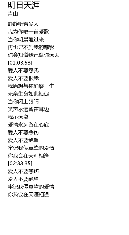 | [02:23.09] | nǐ wǒ huì zài tiān yá xiāng féng |