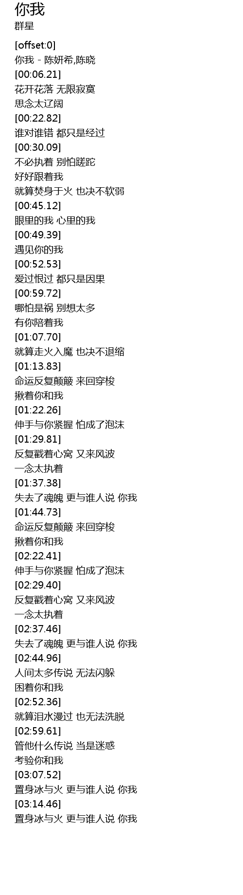 | [00:02.10] | 你我 - 陈妍希,陈晓 |