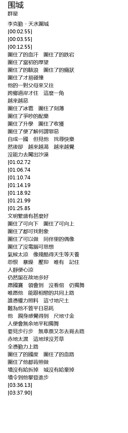 | [03:18.71] | 圍住了的國度 圍住了的血路 |