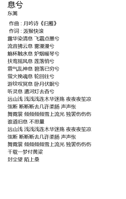 | [00:00.00] | 作曲 : 月吟诗《归雁》 |