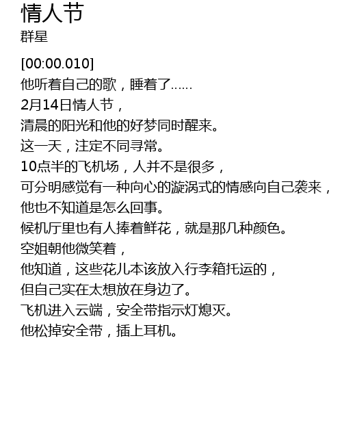 | [00:06.396] | 2 yue 14 ri qing ren jie, |