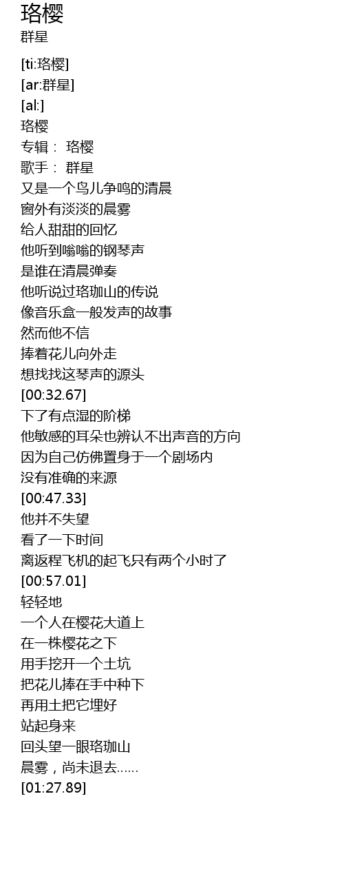 | [00:04.65] | 又是一个鸟儿争鸣的清晨 |