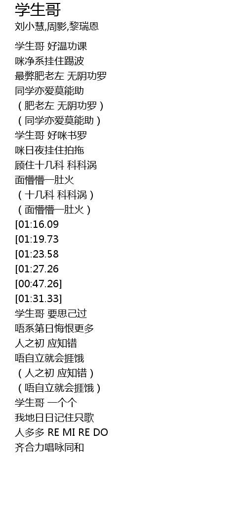 | [00:53.47] | 学生哥 好咪书罗 |