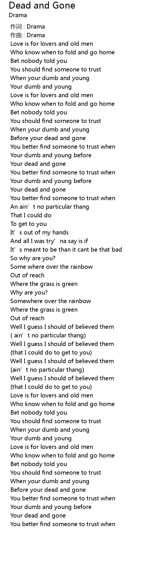 | [01:03.704] | Your dead and gone |