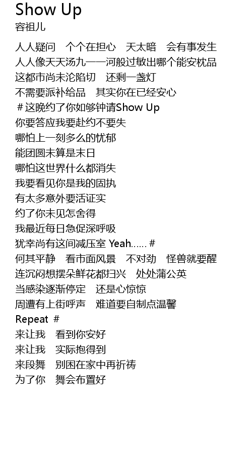 | #这晚约了你如够钟请Show Up | |