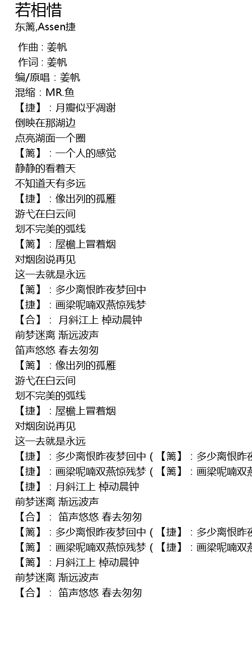 | [00:00.103] | 作词 : 姜帆 |
