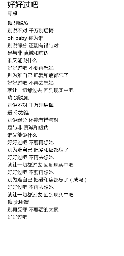 | [00:51.58] | hǎo hǎo guò ba bú yào zài xiǎng tā |