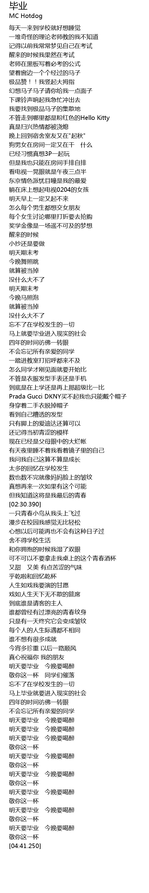 | [04:21.350] | 明天要毕业 今晚要喝醉 |