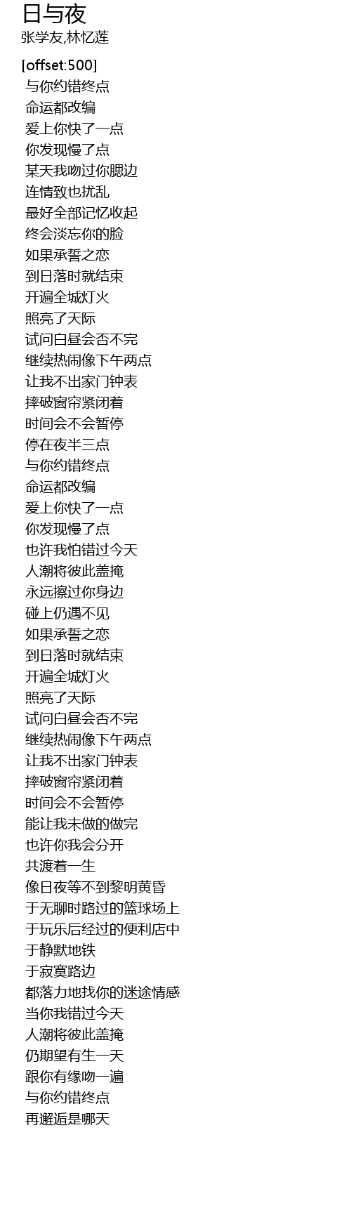 | [03:03.160] | yu ni yue cuo zhong dian |