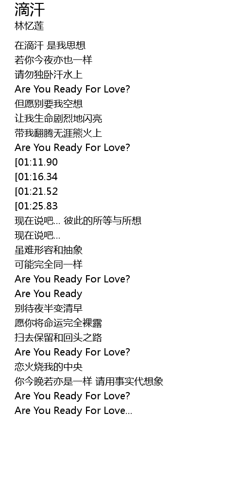 | [02:30.55][01:11.90] | Are You Ready For Love? |