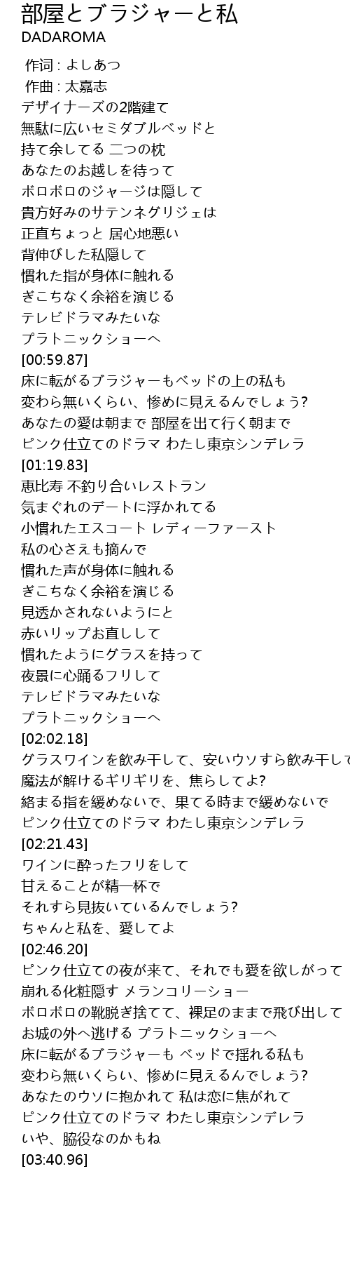| [01:00.33] | 床に転がるブラジャーもベッドの上の私も |
