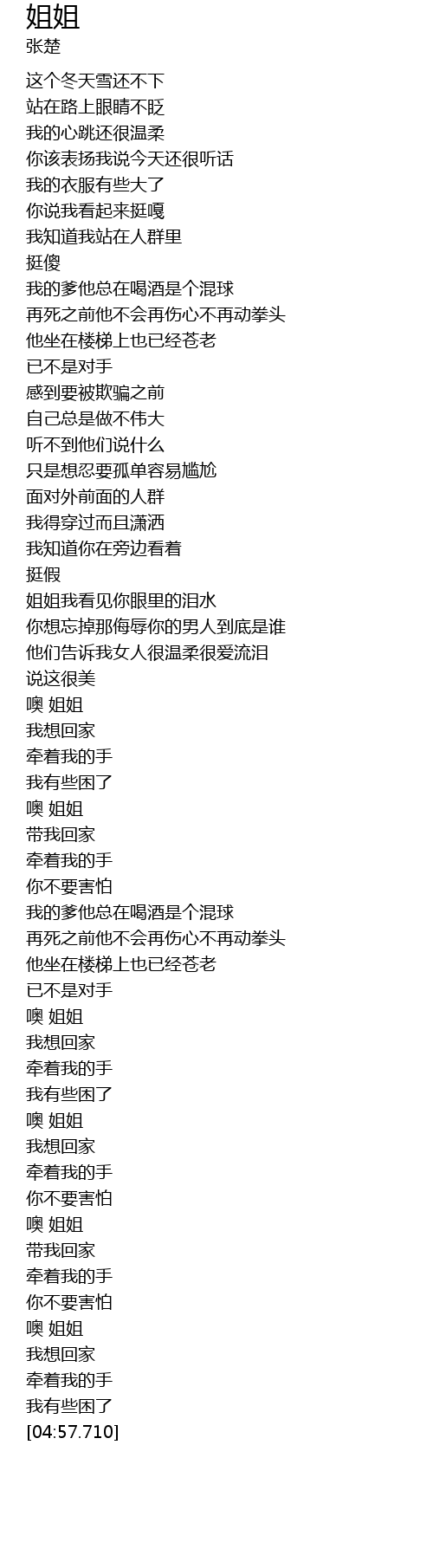| [02:18.510] | 姐姐我看见你眼里的泪水 |