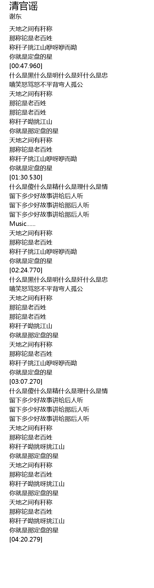 | [03:58.140] | 称秆子呦挑呀挑江山 |