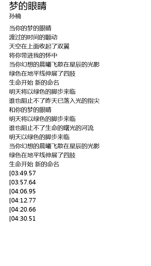 | [05:39.74][04:30.51] | 明天以绿色的脚步来临 |