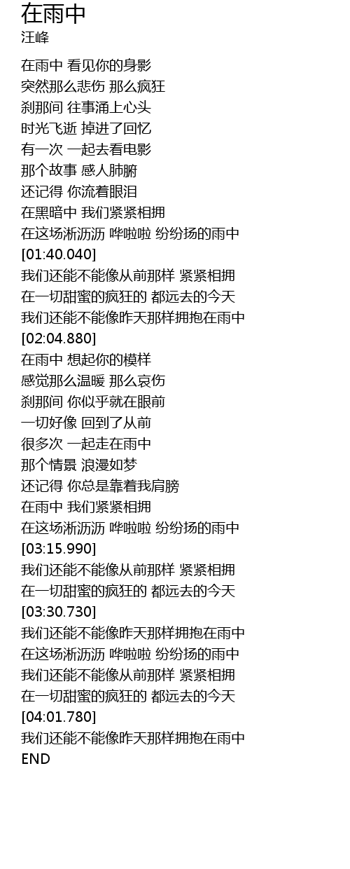 | [04:03.400] | 我们还能不能像昨天那样拥抱在雨中 |