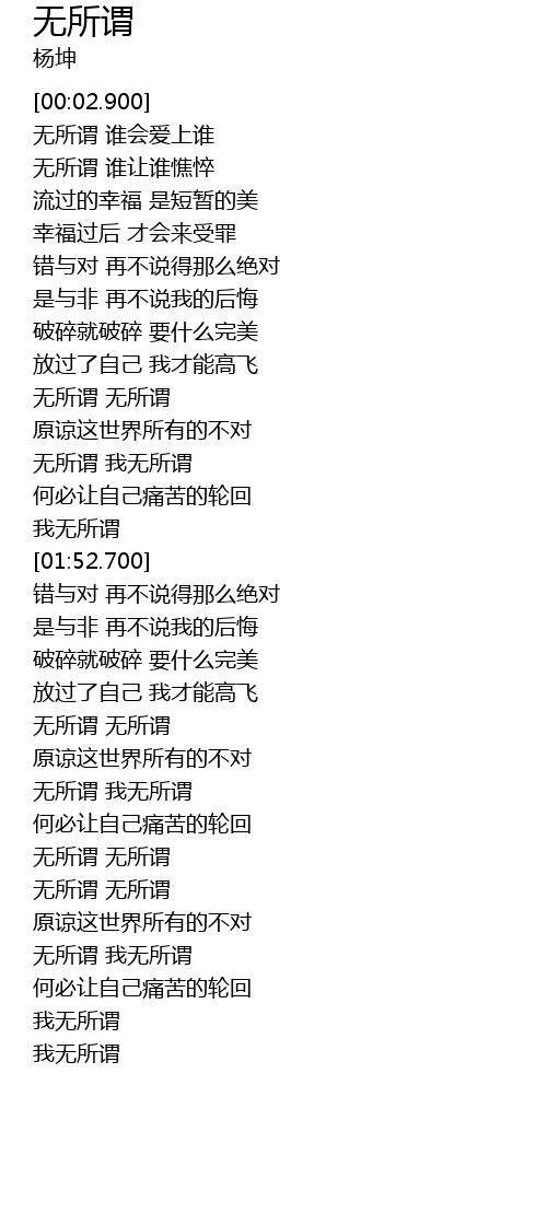 | [02:39.600] | wú suǒ wèi wú suǒ wèi |