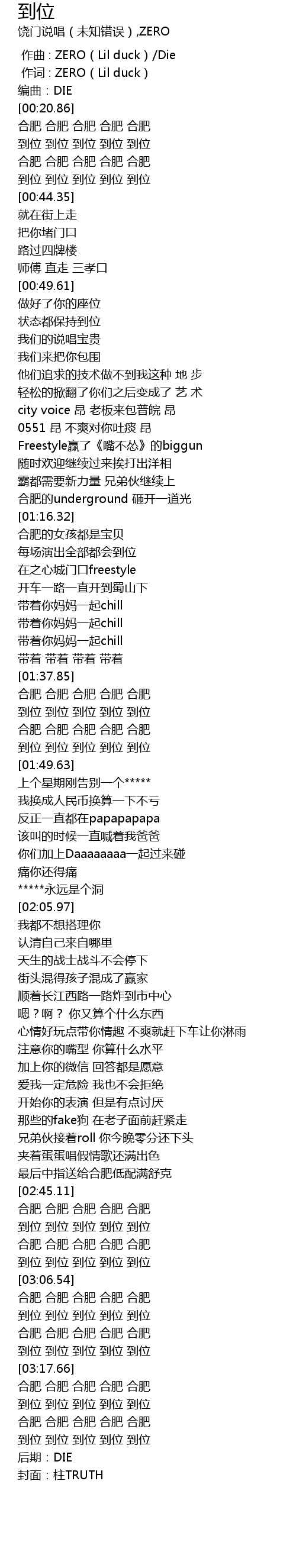 | [00:00.000] | zuo qu : ZERO Lil duck Die |