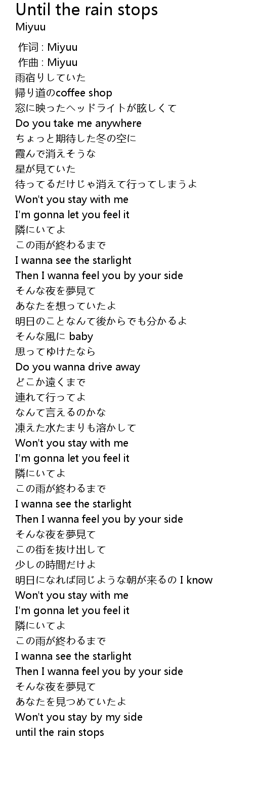 | [03:00.26] | 明日になれば同じような朝が来るの I know |