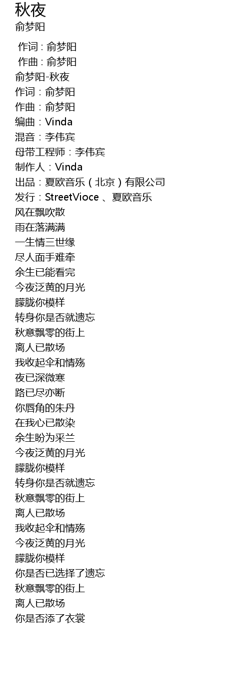 | [00:00.86] | 俞梦阳-秋夜 |