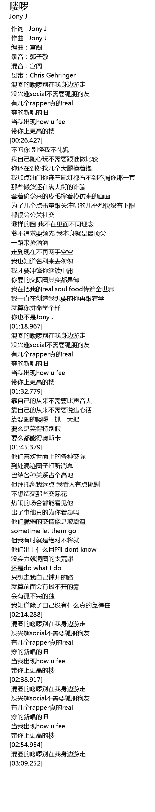 | [01:17.271] | 你也不是Jony J |