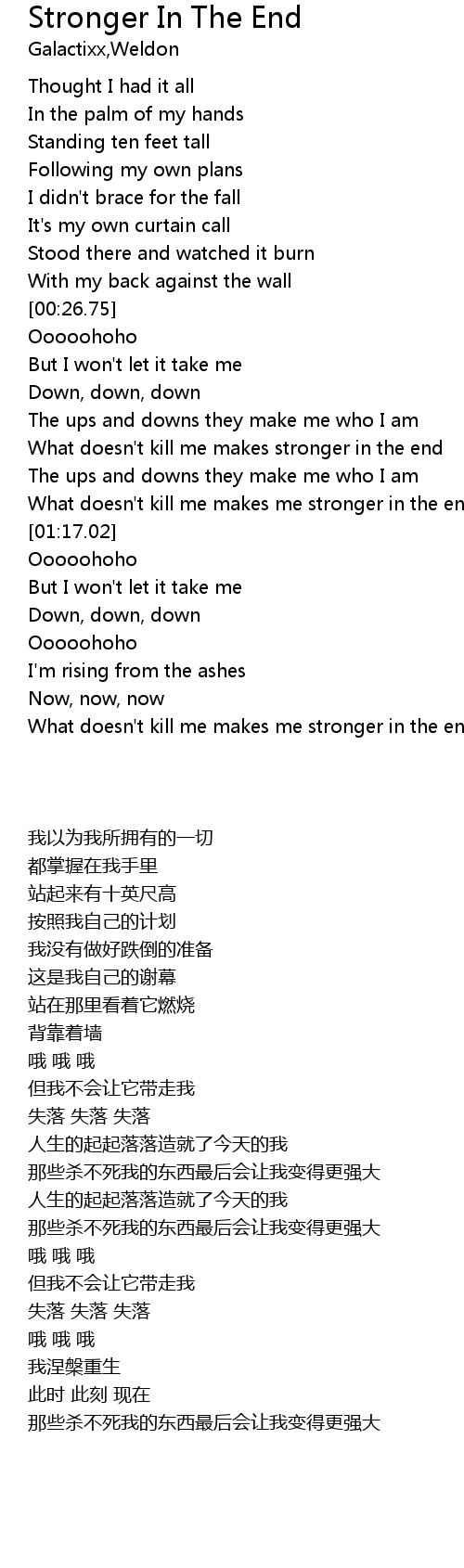 | [02:16.70] | What doesn't kill me makes me stronger in the end |