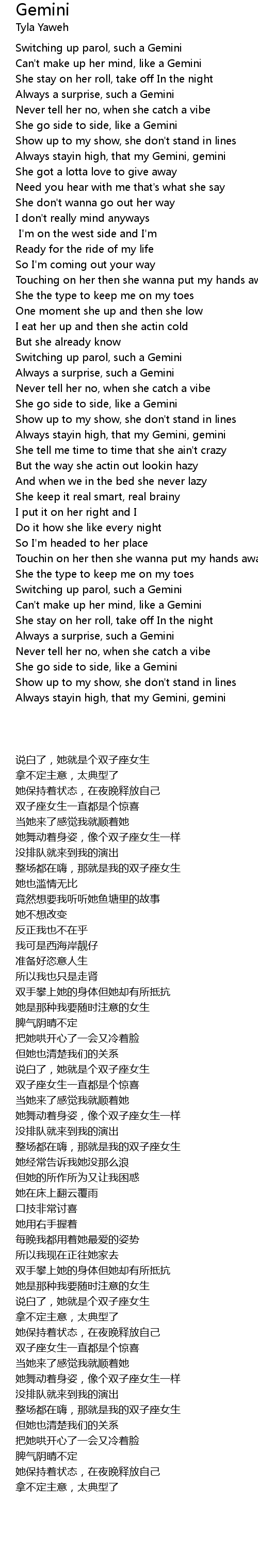 Always stayin high, that my Gemini, gemini |