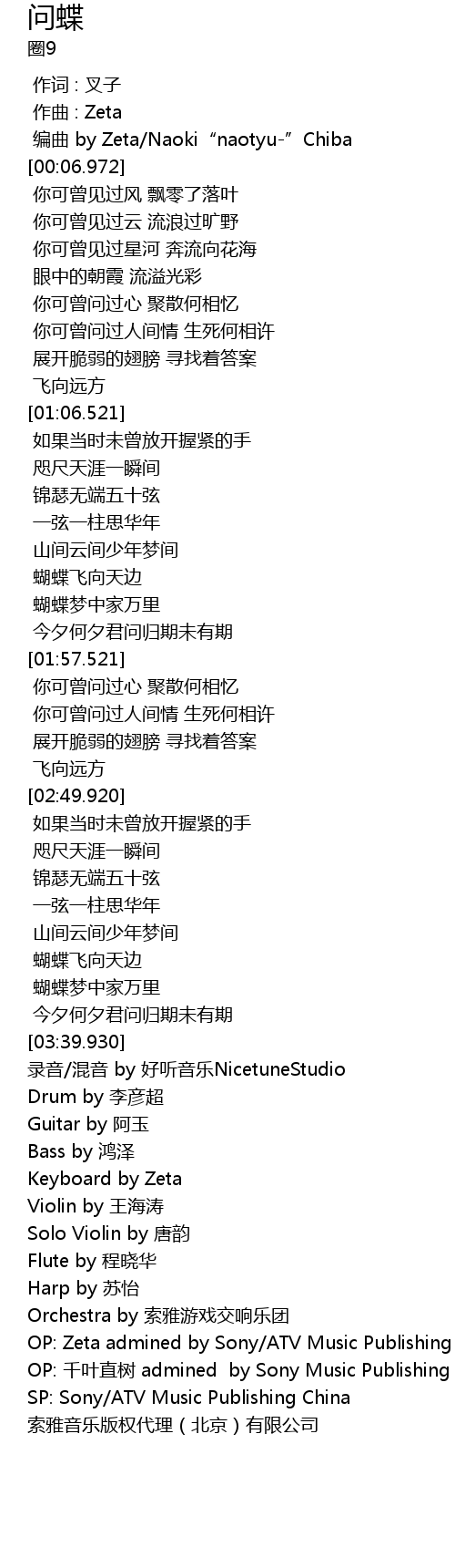 | [03:51.500] | SP: Sony/ATV Music Publishing China 索雅音乐版权代理(北京)有限公司 |