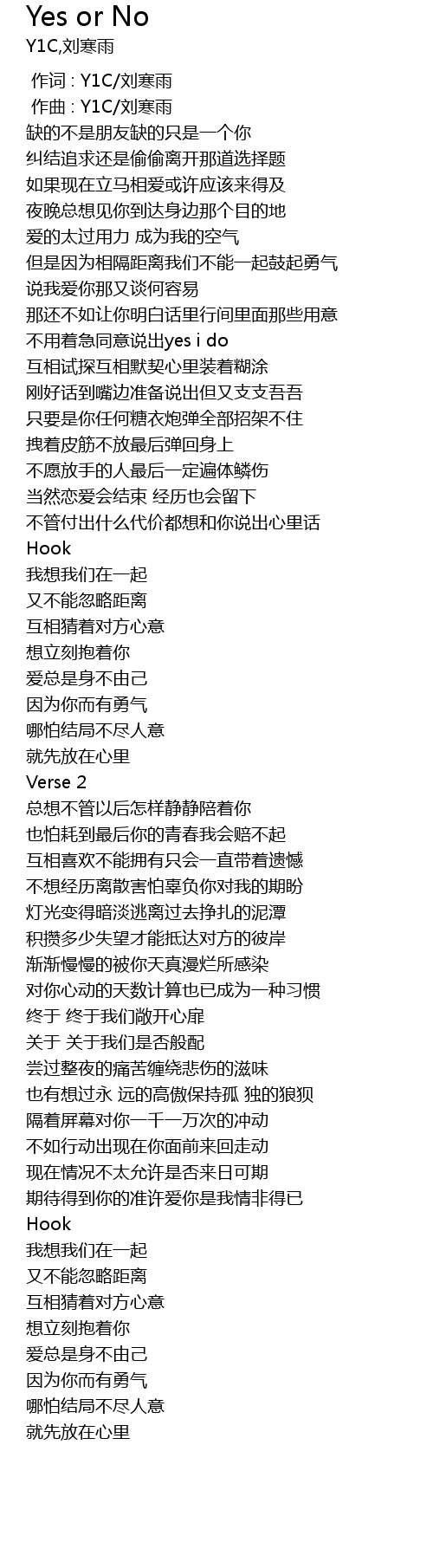 | [00:01.000] | 作词 : Y1C/刘寒雨 |