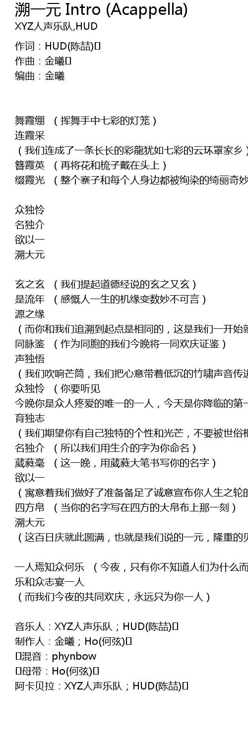 | 阿卡贝拉:XYZ人声乐队;HUD(陈喆) |