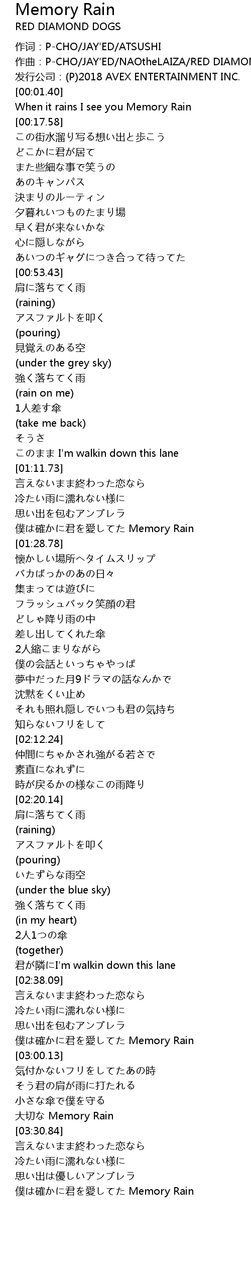 | [02:51.59] | 僕は確かに君を愛してた Memory Rain |
