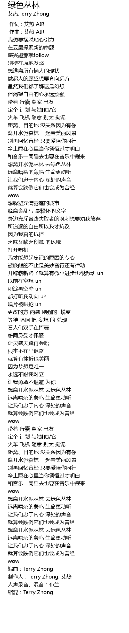 | [03:34.50] | 制作人:Terry Zhong, 艾热 |