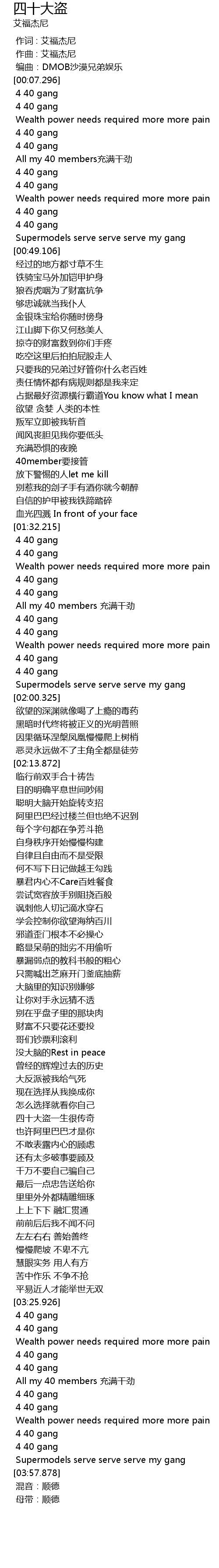 | [03:39.987] | All my 40 members chōng mǎn gàn jìn |