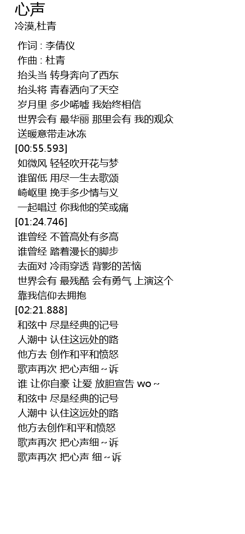 | [03:23.772] | 歌声再次 把心声细~诉 |