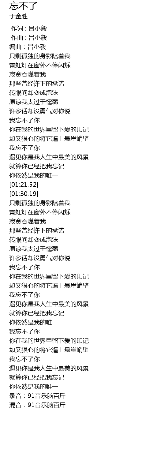 | [02:01.44] | wǒ wàng bù liǎo nǐ |