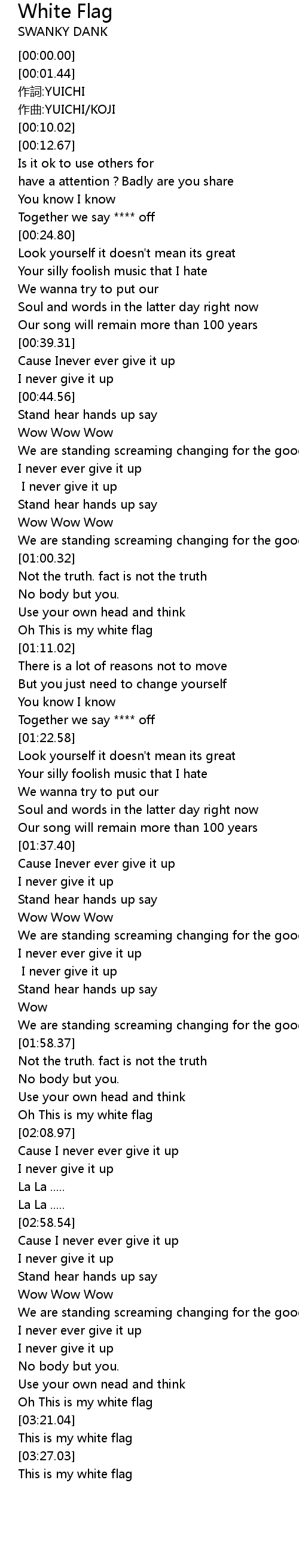 | [03:29.24] | This is my white flag |