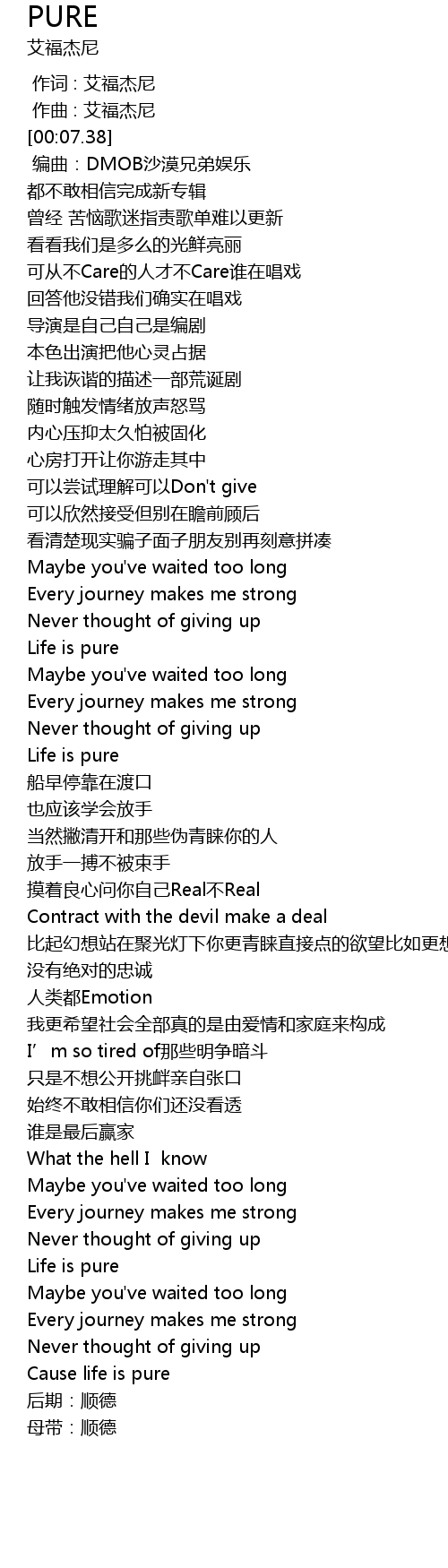 | [02:11.34] | Life is pure |