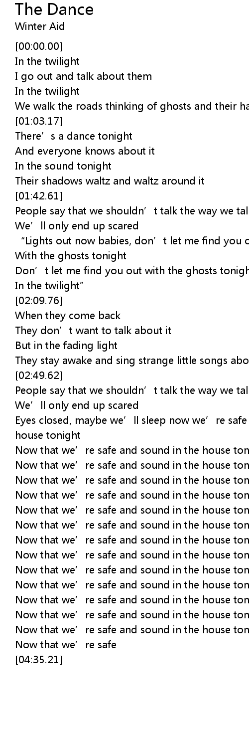 | [02:58.39] | Eyes closed, maybe we’ll sleep now we’re safe and sound in the house tonight |