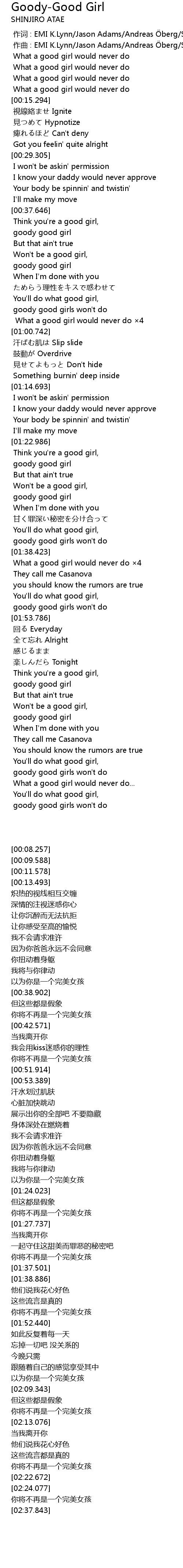 | [00:08.257] | What a good girl would never do |