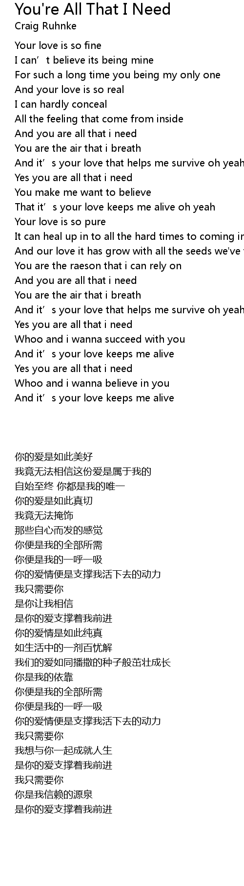 | Song | You're All That I Need |