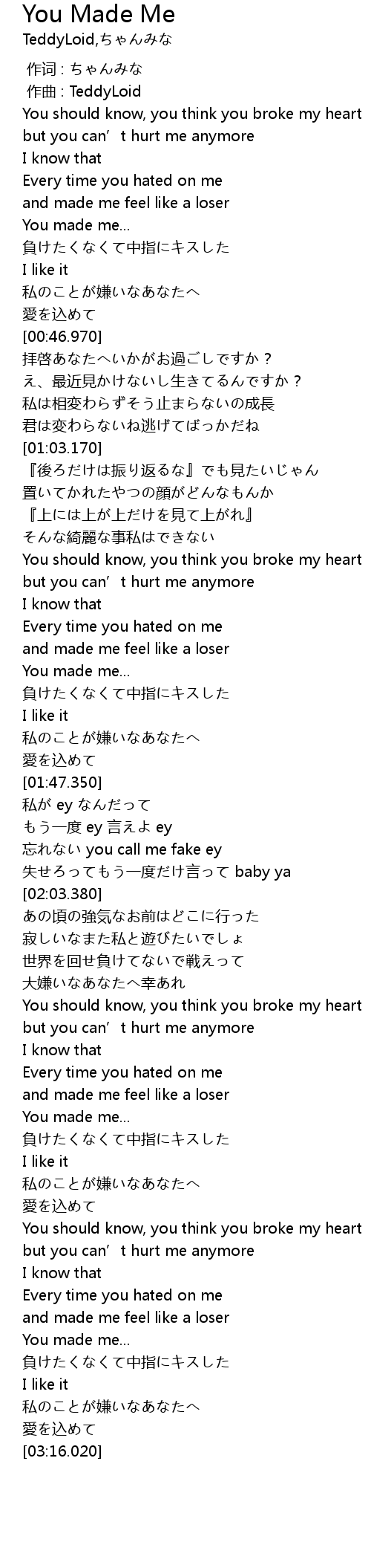 | [02:45.550] | You should know, you think you broke my heart |