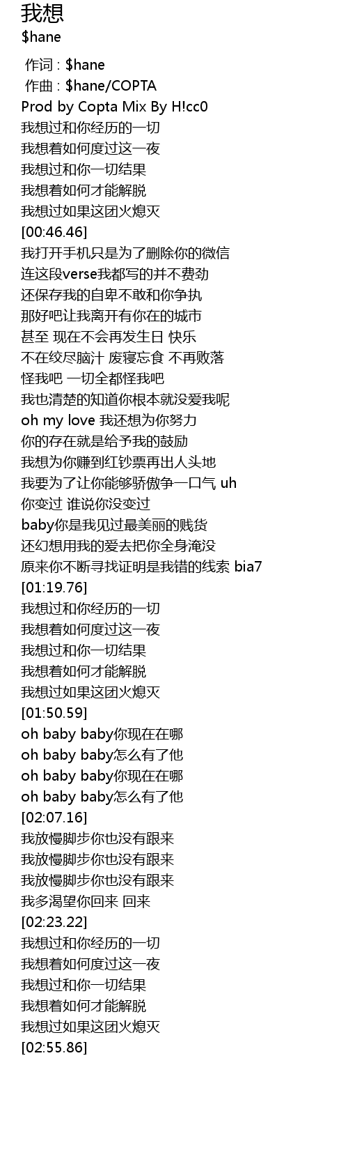 | [00:01.000] | 作词 : $hane |