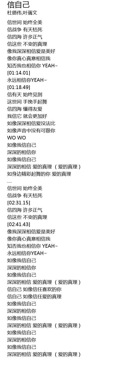 | [04:04.43] | 如像我信自己 |