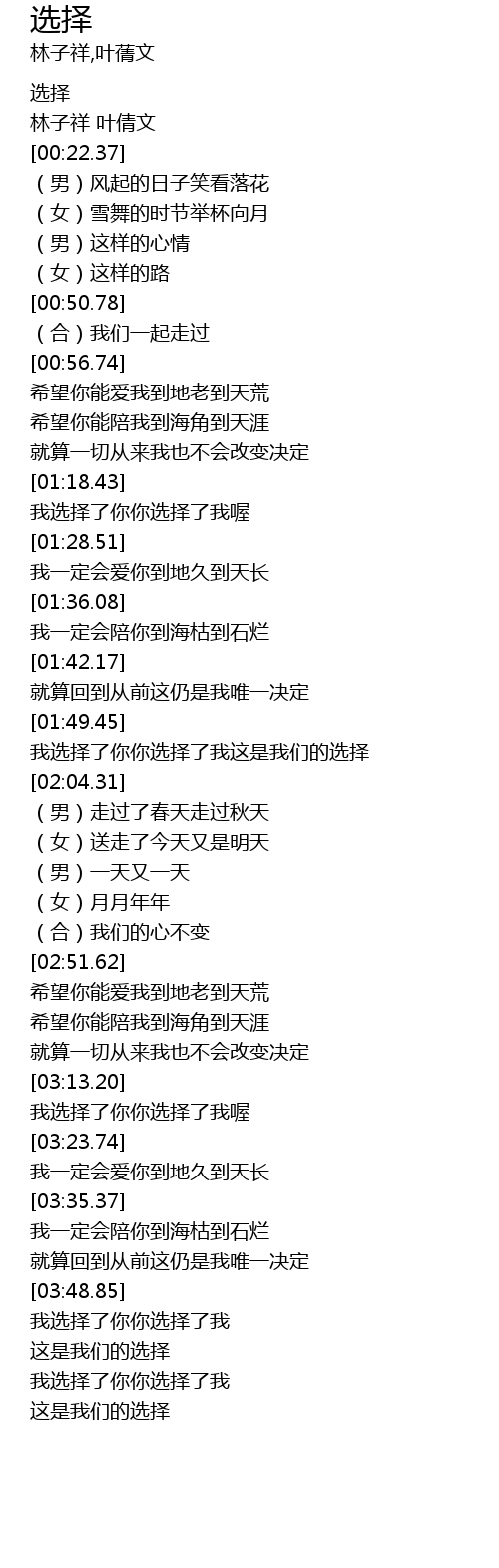 | [03:14.52] | 我选择了你你选择了我喔 |