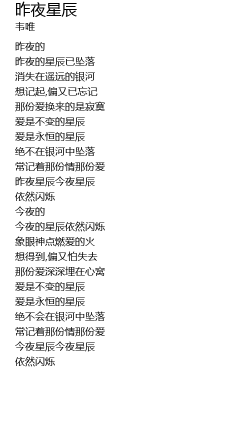 | [01:14.10] | 昨夜星辰今夜星辰 |
