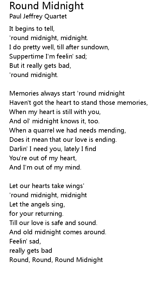 'round midnight, midnight. |