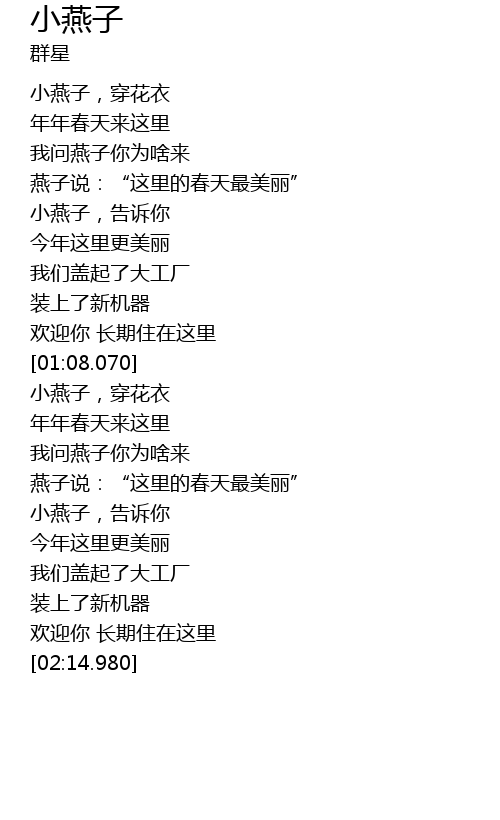| [01:40.390] | 燕子说:“这里的春天最美丽” |