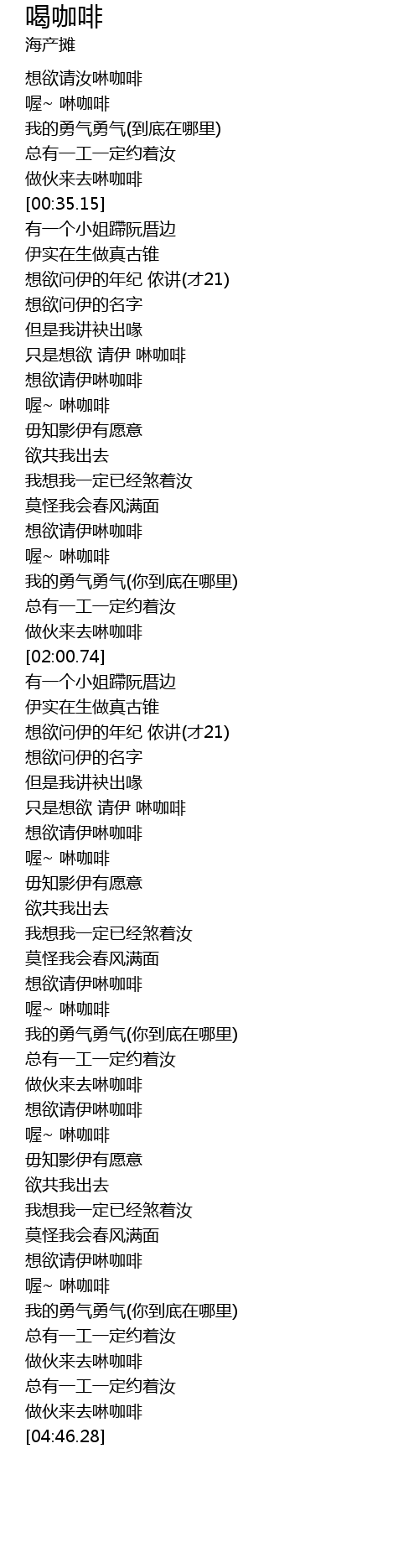 | [00:00.02] | 想欲请汝啉咖啡 |