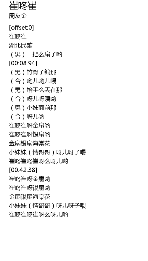 | [00:32.76] | 崔咚崔咚崔呀么呀儿哟 |