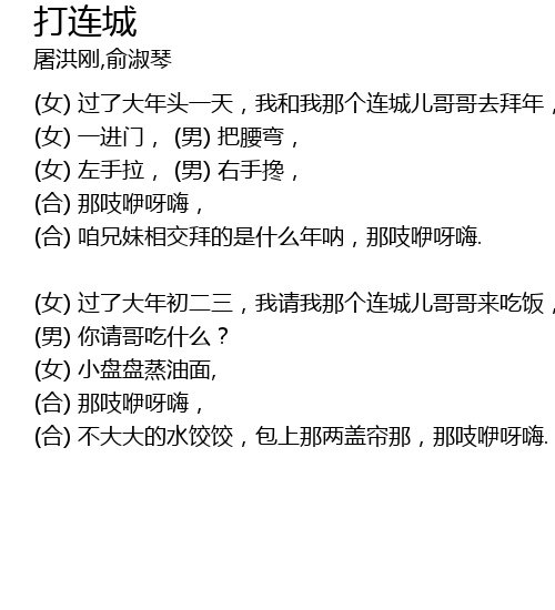 | (合) 咱兄妹相交拜的是什么年呐,那吱咿呀嗨. | |